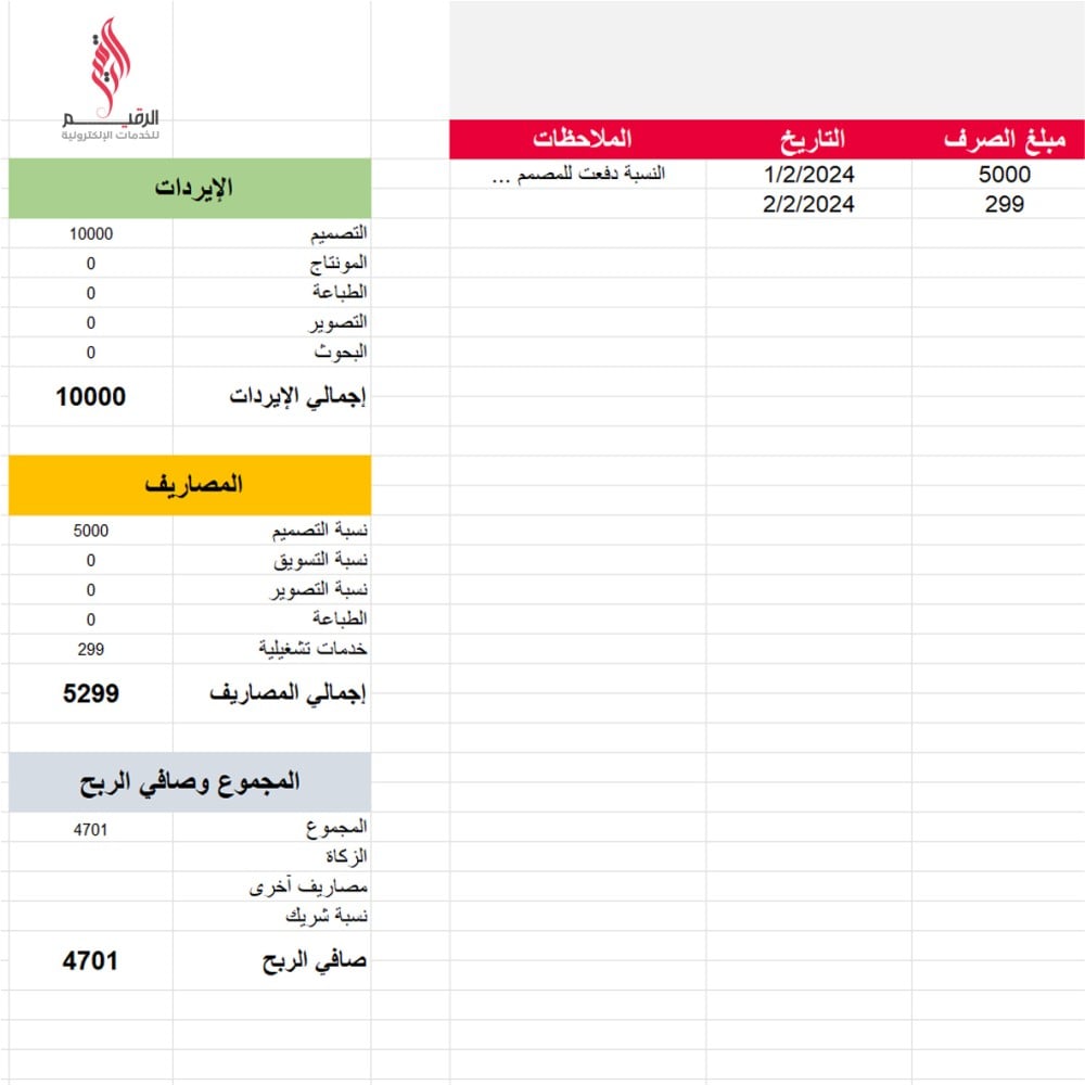 ملف اكسل يعمل على مساعدتك في إدارة وتدوين كل من مبيعاتك ومصاريفك