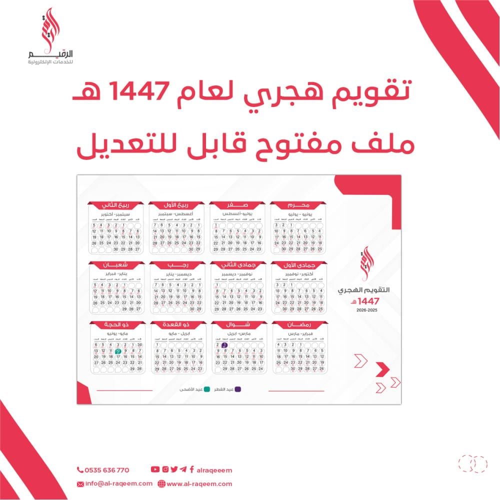 هذا المنتج عبارة عن التقويم الهجري لعام 1447 قابل للتعديل ملف مفتوح.
